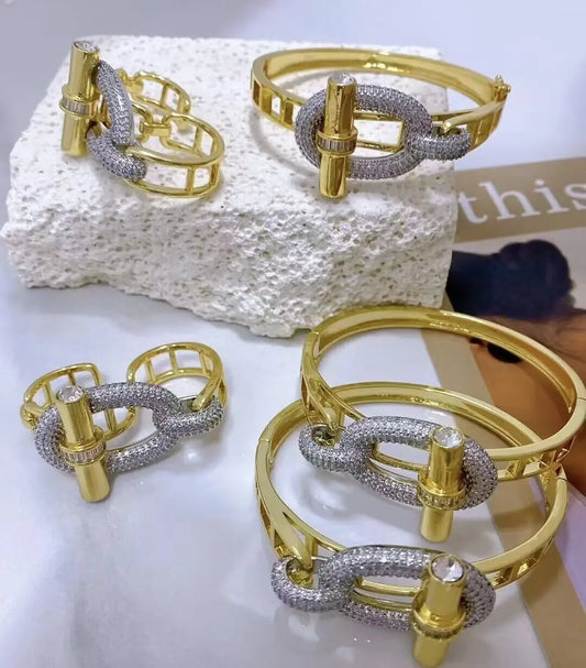 Duo brazalete plateado y dorado AI 18k
