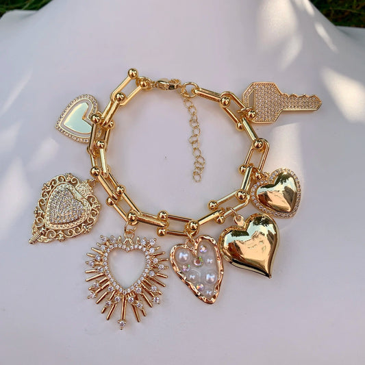 Set pulsera y collar de corazón AI 18K
