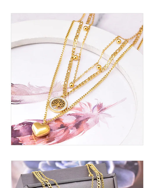 Cadena cascada con árbol de la vida y corazón AI 18K