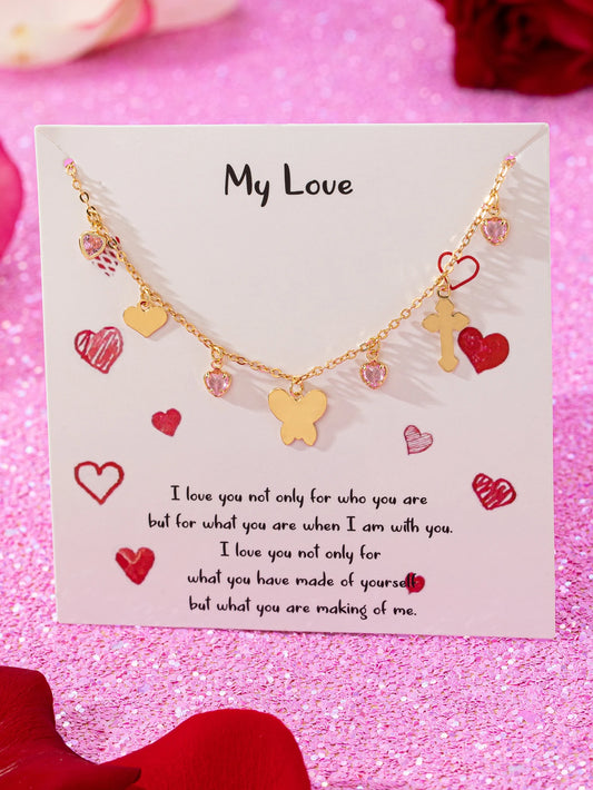 Romántico Collar de corazón, cruz y mariposa
